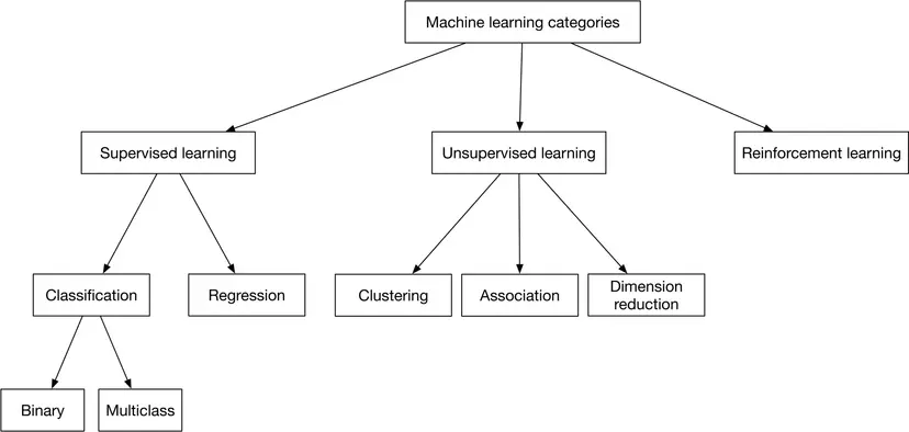 There are many different ways to frame a problem as an ML task. Most problems can be framed as one of the ML categories (leaf nodes) shown in Figure 1.5. As most readers are likely already familiar with them, we only provide an outline here.