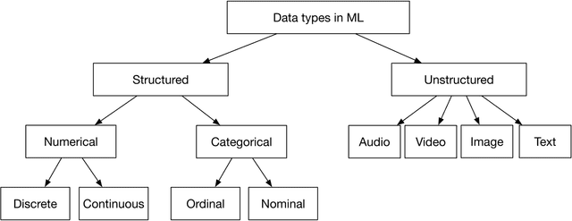 In ML, data types differ from those in programming languages, such as int, float, string, etc. At the high level, data types can be broken down into two types: structured and unstructured data, as shown in Figure 1.9.