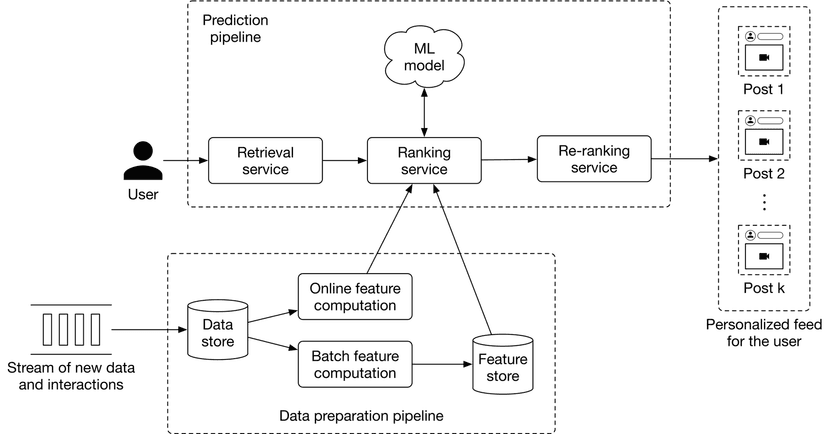Figure 1.23 shows an example of the ML system design for a personalized news feed system. We will examine it in more depth in Chapter 10.